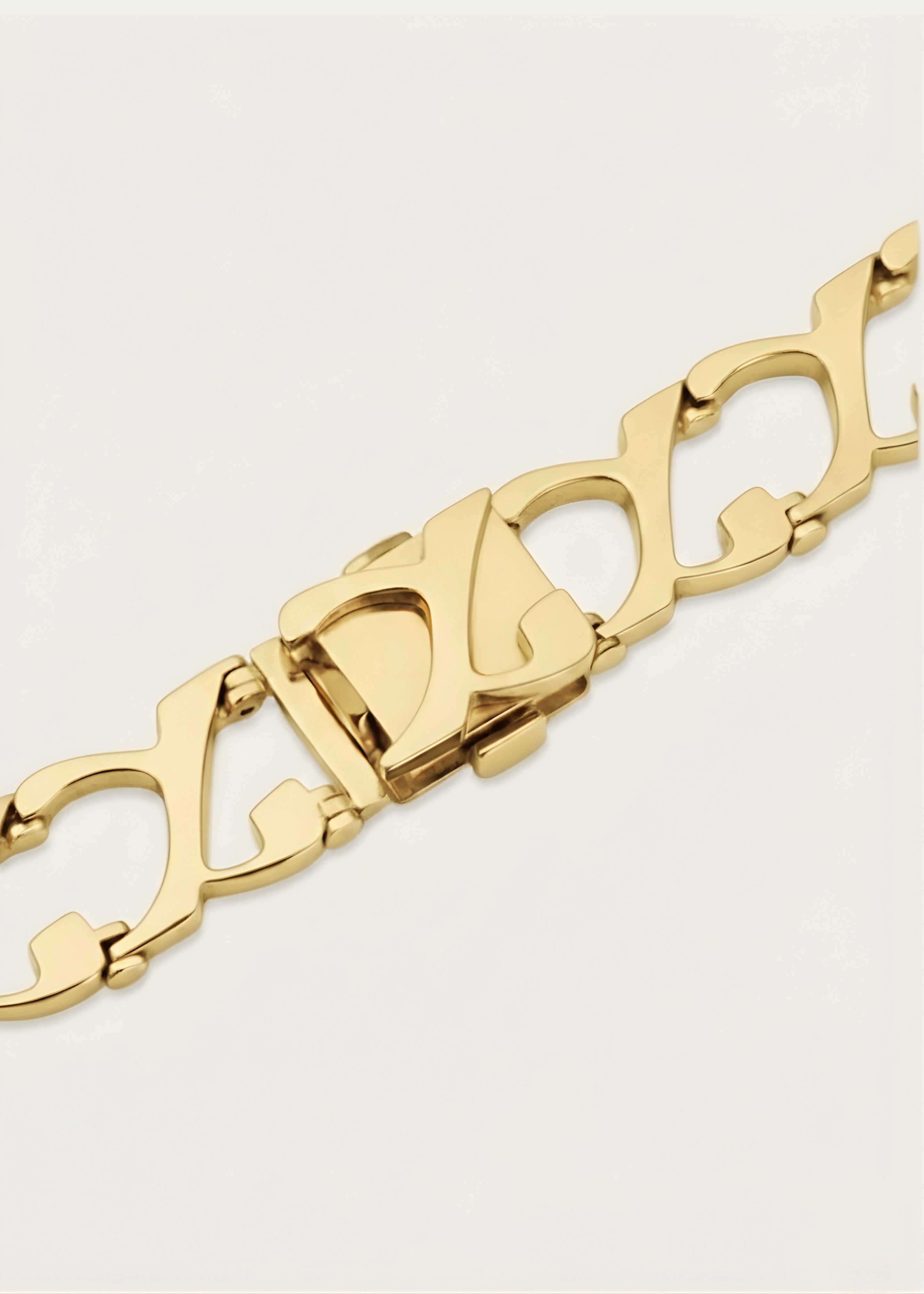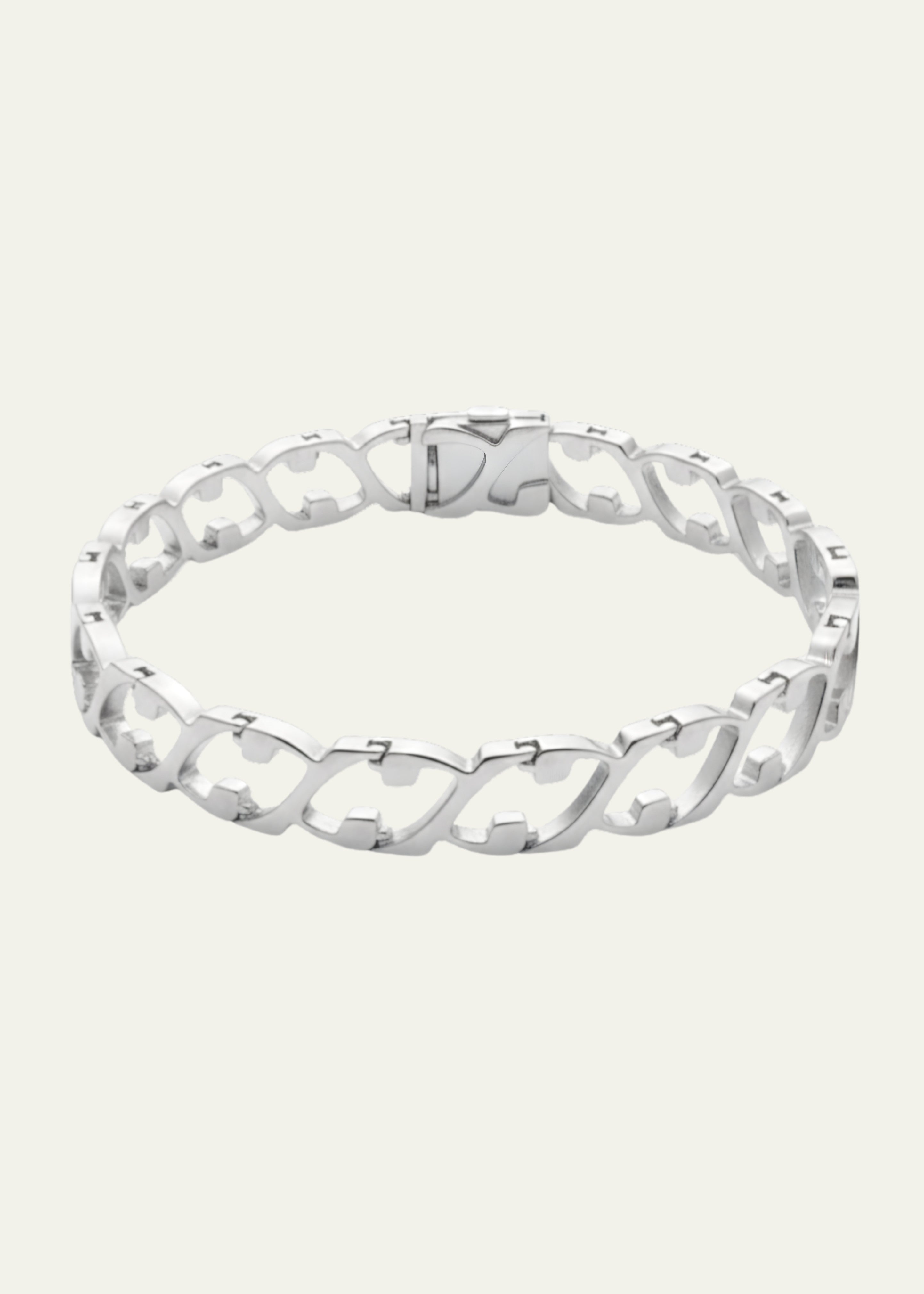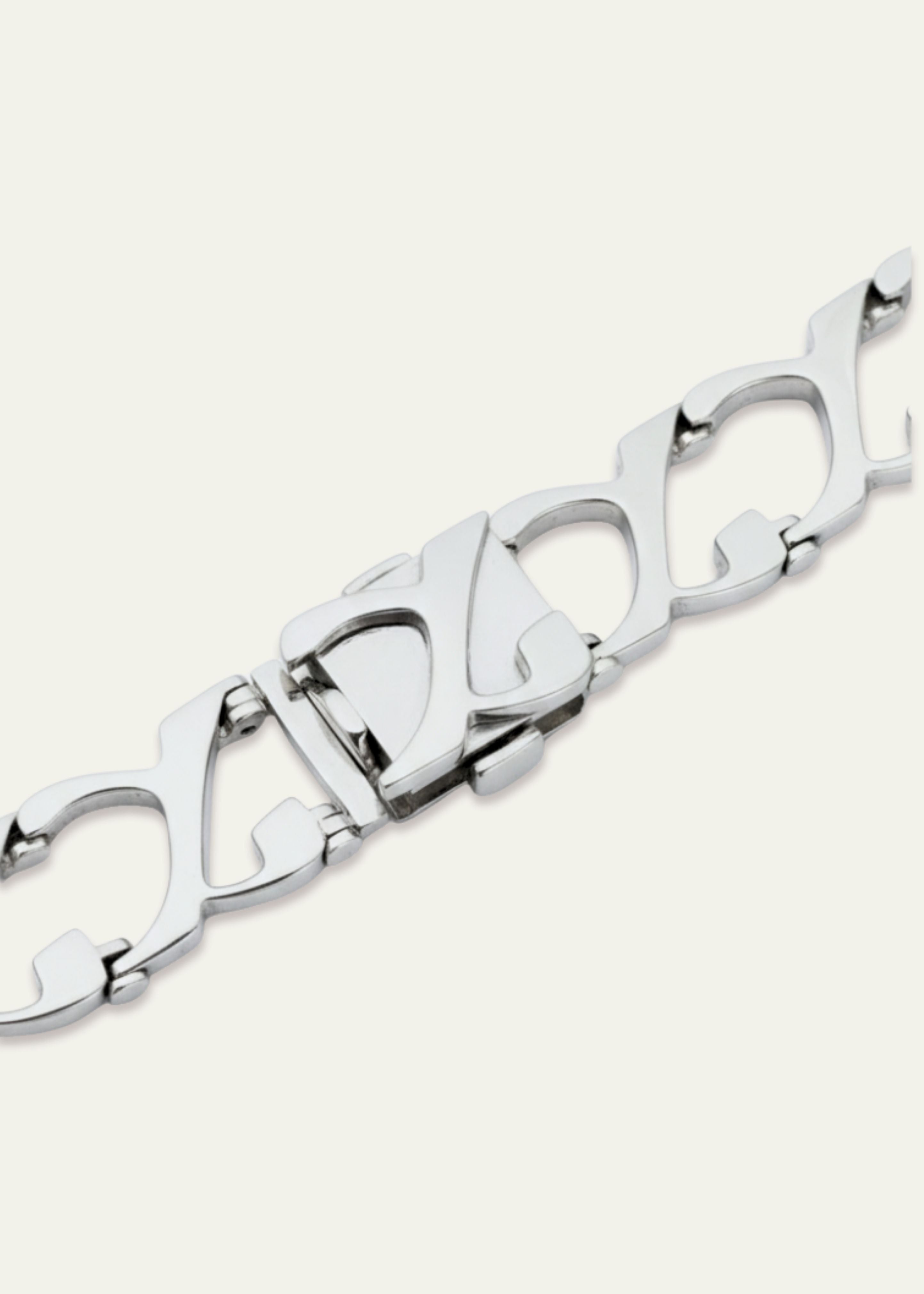 Crafted with precision, the bracelet features custom Alef-shaped links and a refined concealed clasp, designed for strength, comfort, and everyday wear. Available in rhodium-plated sterling silver or 14K gold.