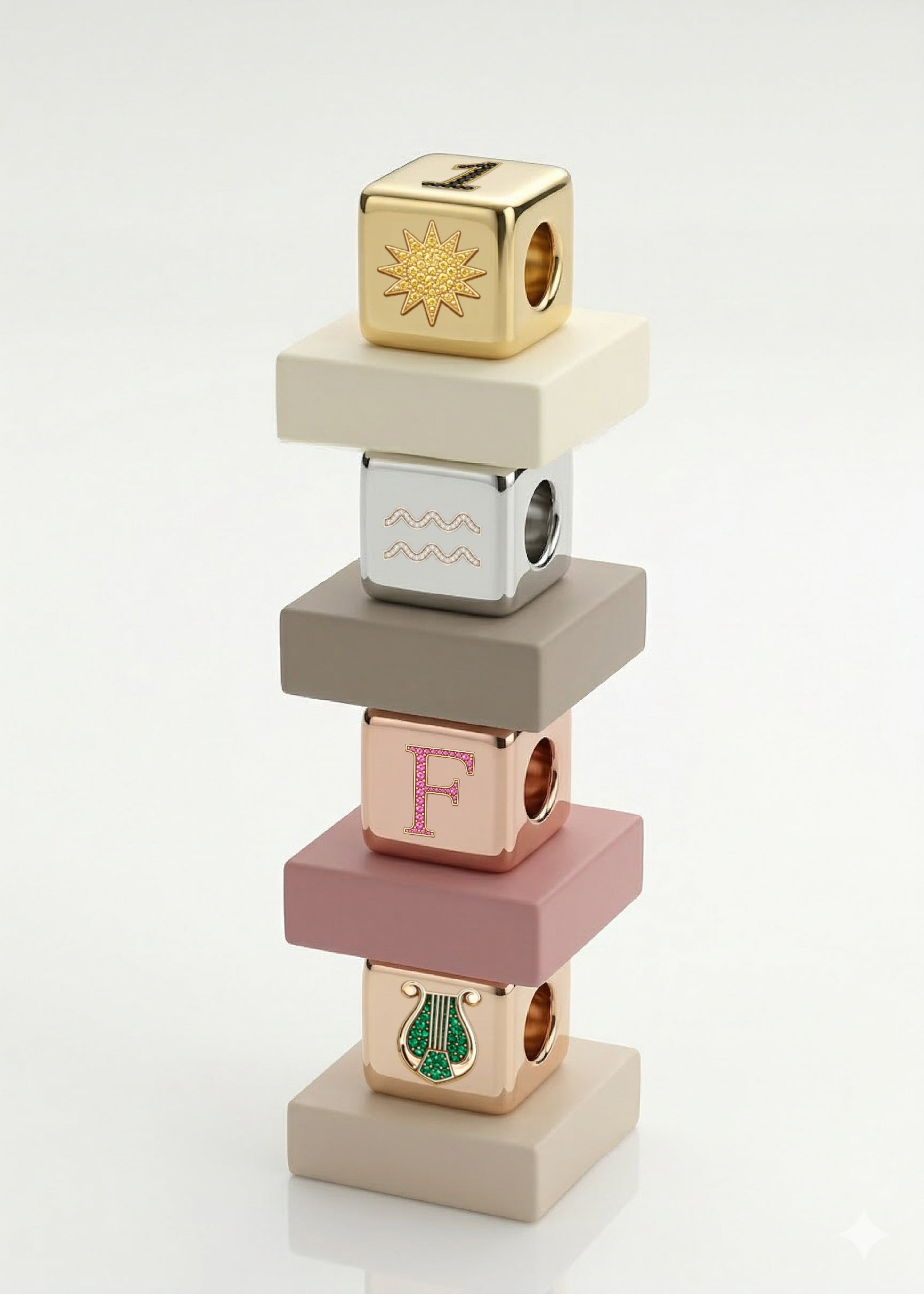The Building Blocks collection transforms ancient meaning into modern design: sculptural cubes you can personalize with letters, symbols, and celestial signs — the building blocks of your own creation.